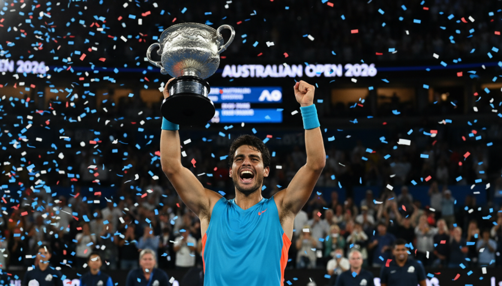 Tennis के इतिहास में रविवार, 1 फरवरी 2026 का दिन सुनहरे अक्षरों में दर्ज हो गया है। मेलबर्न पार्क में खेले गए ऑस्ट्रेलियन ओपन (Australian Open) के फाइनल मुकाबले में स्पेन के युवा सनसनी कार्लोस अल्काराज़ (Carlos Alcaraz) ने एक रोमांचक मुकाबले में दिग्गज नोवाक जोकोविच (Novak Djokovic) को हराकर अपना पहला ऑस्ट्रेलियन ओपन खिताब जीत लिया है। यह मुकाबला न केवल दो पीढ़ियों की टक्कर थी, बल्कि यह टेनिस जगत में सत्ता परिवर्तन का भी प्रतीक बन गया है। रॉड लेवर एरिना में दर्शकों की खचाखच भीड़ के बीच, अल्काराज़ ने अपने करियर का सातवां ग्रैंड स्लैम खिताब अपने नाम किया।